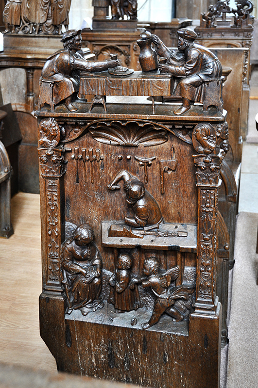 L'atelier de Joseph avec au dessus, en ronde-bosse, Les Compères