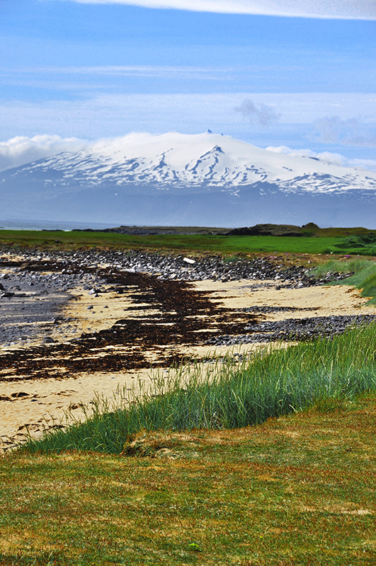 Vue du Snæfellsjökull depuis la plage d'Ytri Tunga
