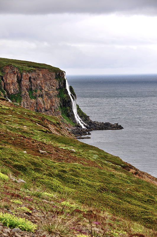 Cascade bord de mer sur le fjord d'Eyjafjörður